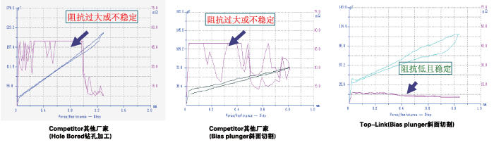 1、壓縮量一般為總行程的2/3;壓入太少,正向力不夠,會(huì)導(dǎo)致阻抗不穩(wěn)定;壓入過(guò)多,會(huì)將管口撞傷,導(dǎo)致卡Pin。在裝配過(guò)程中也要注意避免將管口撞傷,導(dǎo)致卡Pin。